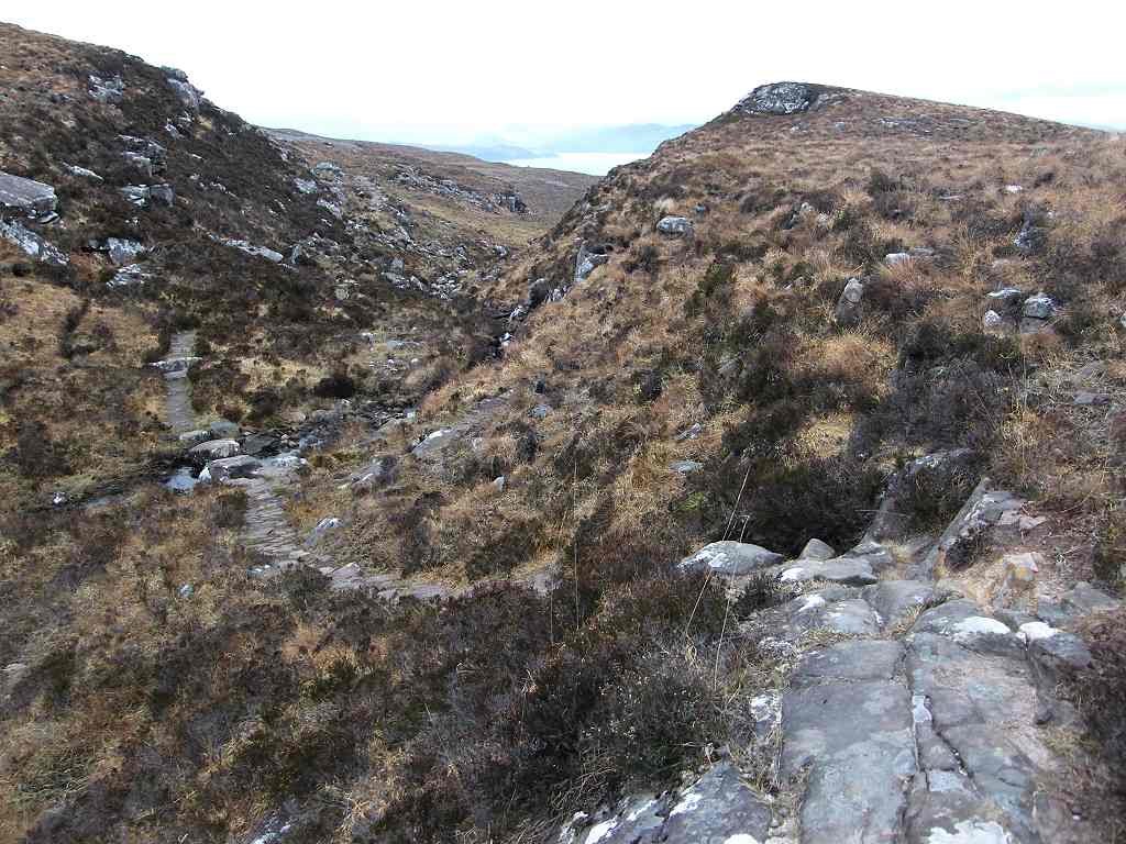 The state of the path worsened, and it reminded us of the “Postie’s Path” from Achiltibuie, which wasn’t all that far back. I had struggled with that, and I was beginning to struggle with this. There were lots of streams to cross, it was very uneven and boggy in places.