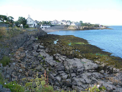 We walked round to the next bay passing people fishing with rods from the rocks below. A fisherman buzzed up in a small boat to check his lobster pots. There was just one lobster big enough to keep, he threw three smaller ones and a number of crabs back into the water. Not a very good catch.